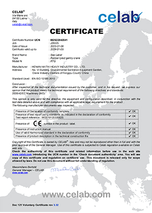 CE of Rubber Tyred Gantry Crane